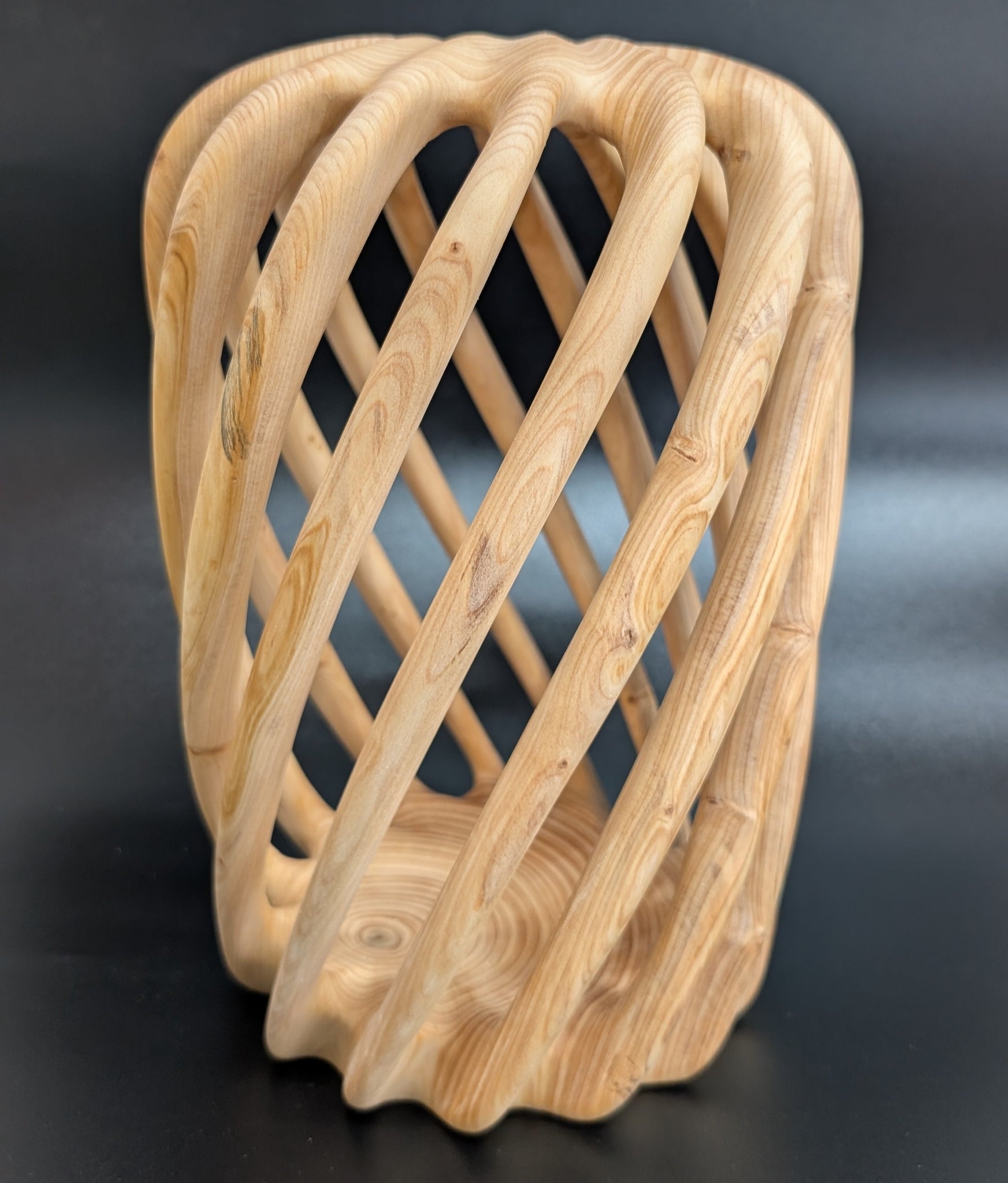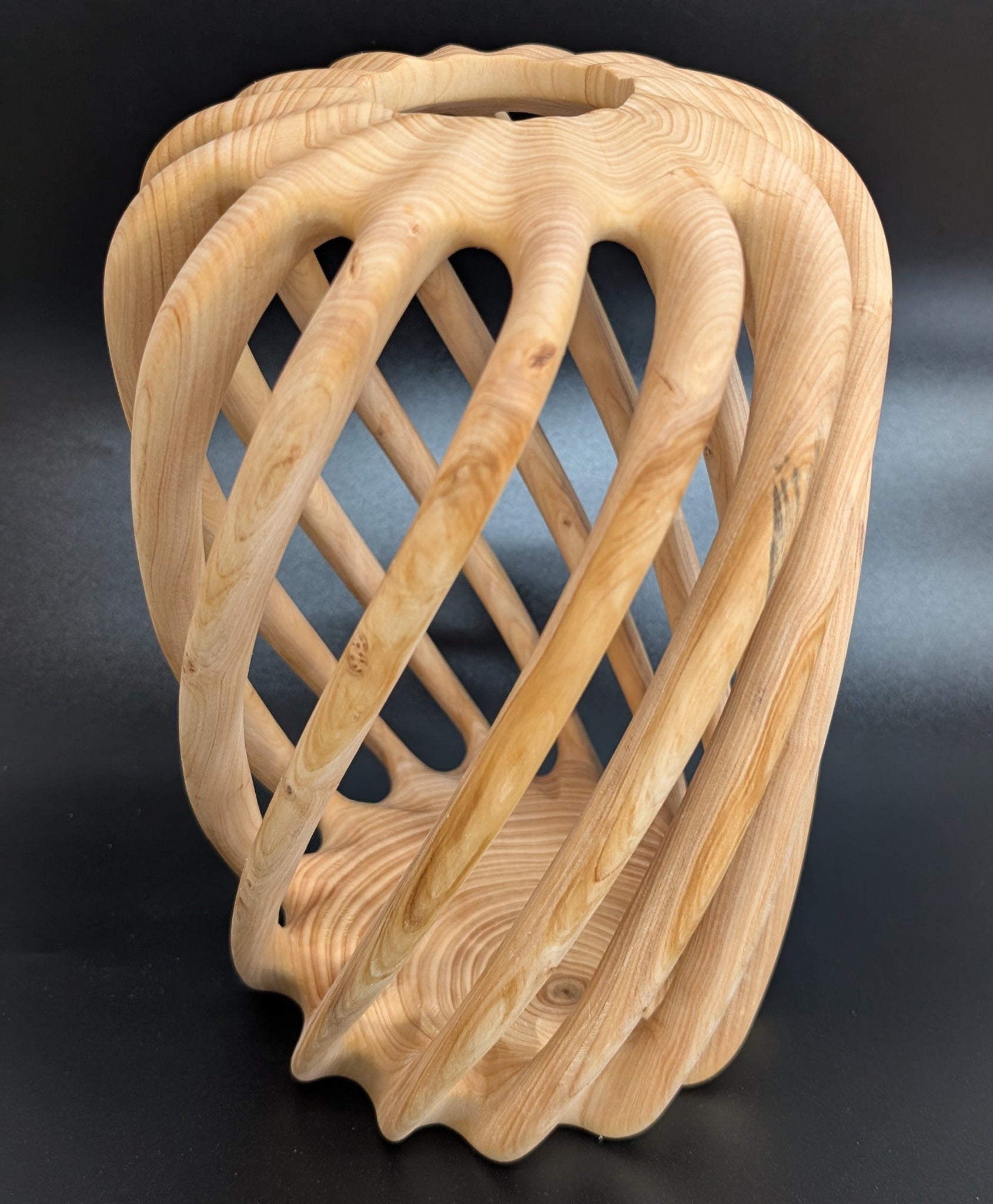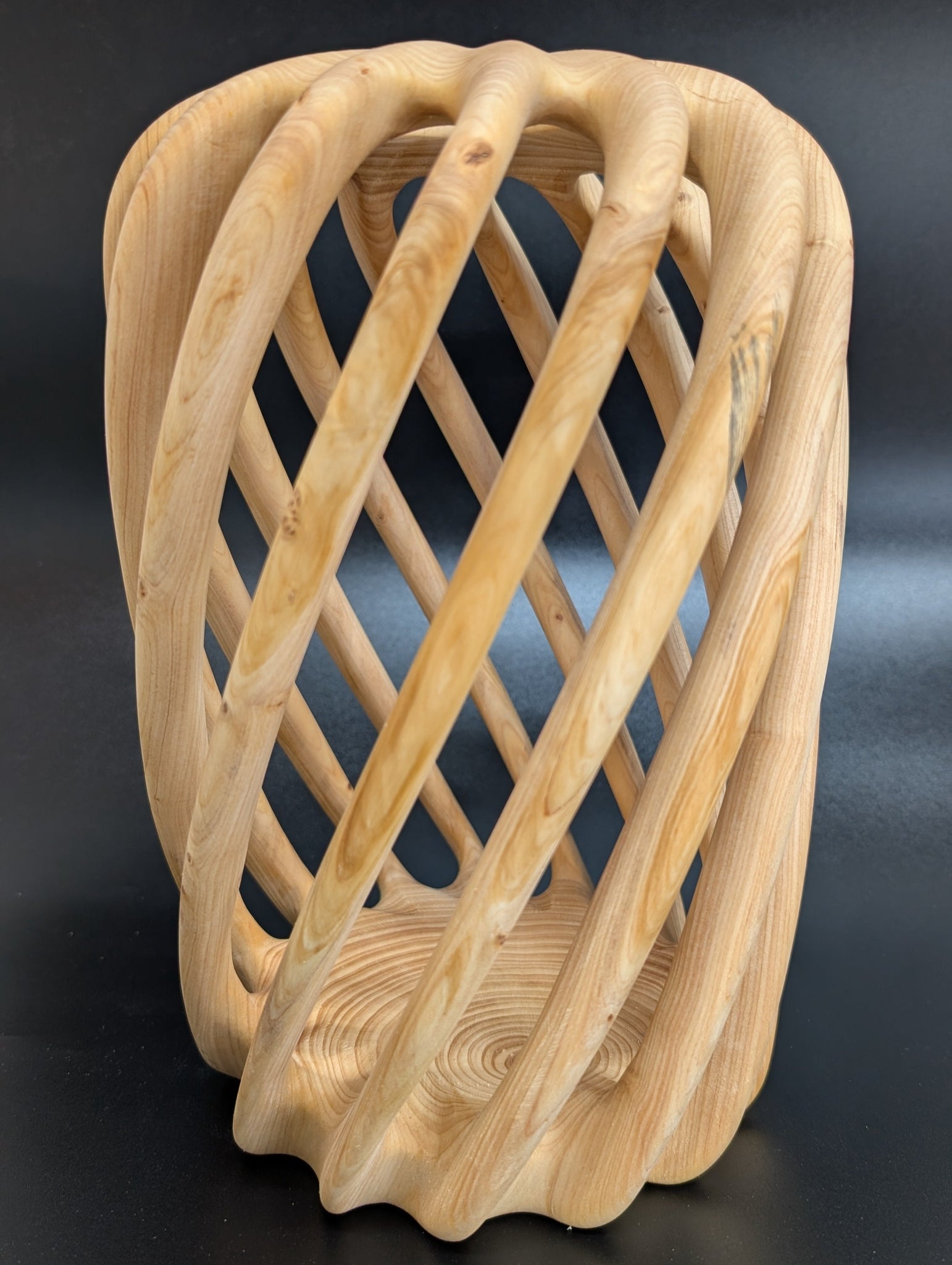 The spiral cuts create a sense of motion, while the hollowed body suggests both fragility and strength a vessel that feels alive, as if it might continue to unfurl.